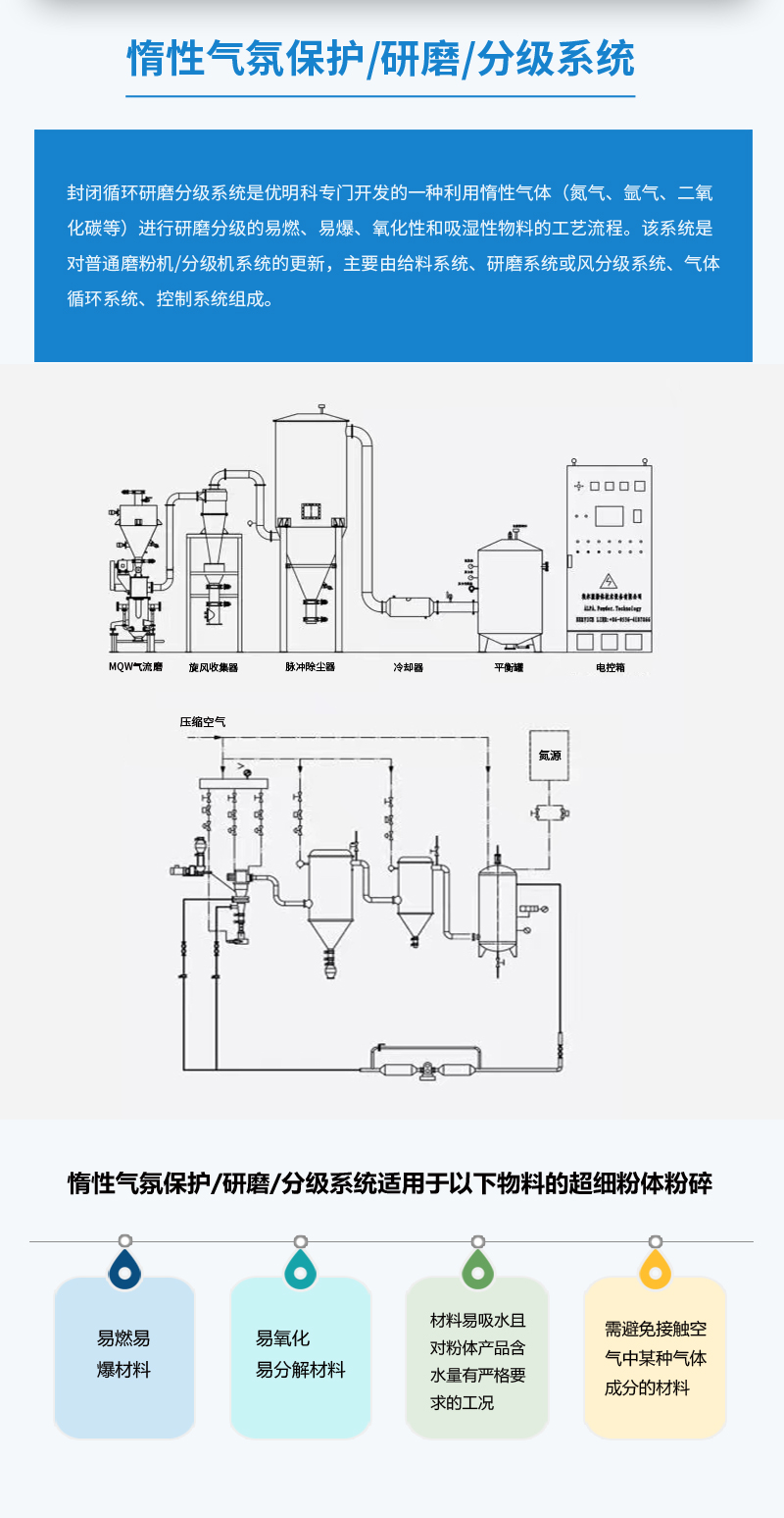 湖南某鋰電材料公司:碳酸鋰氣流磨粉碎生產線-MQW40氣流磨